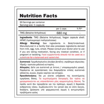 TMG Betaine Anhydrous(680mg) -90 caps No Fillers- Gold Touch Nutrition