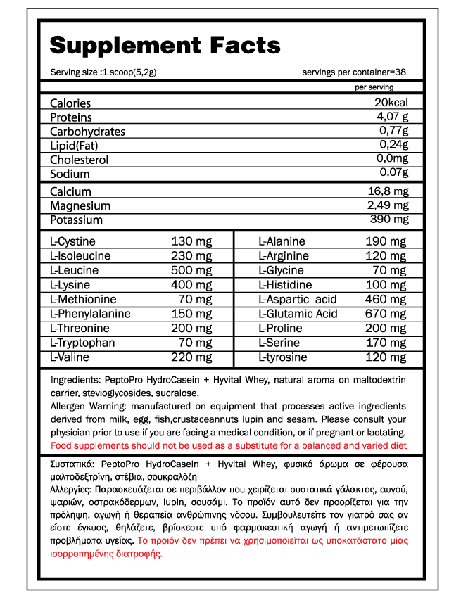 Δοσολογία: 3 φορές την ημέρα ενδιάμεσα από τα γέυματα.Κάθε δόση ένα scoop