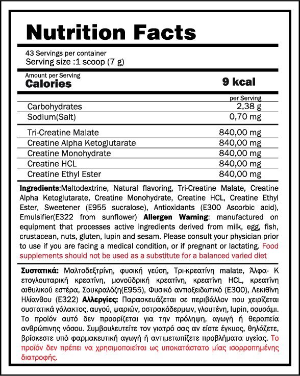 Ημέρες Προπόνησης: Καταναλώστε 5γρ. διαλυμένα σε νερό ή χυμό με το πρωινό και 5γρ. 30 λεπτά πριν την προπόνηση